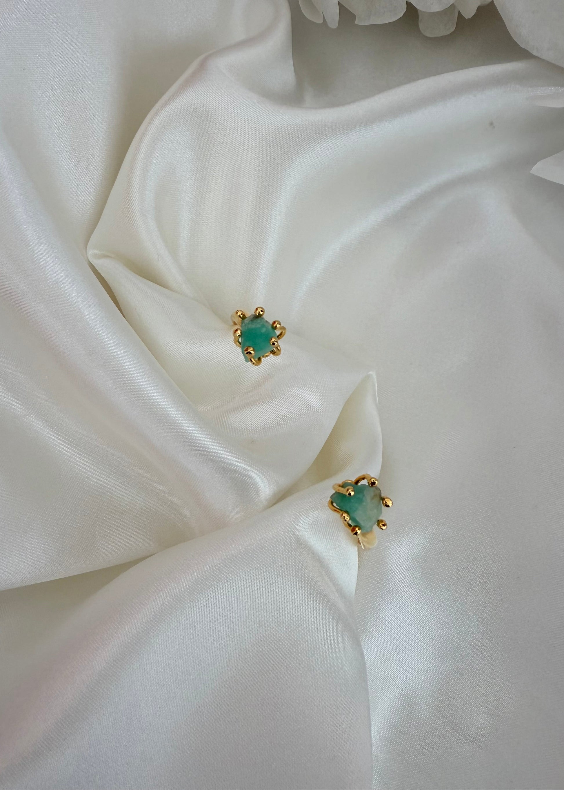 This open cuff bracelet showcases two natural raw emeralds set on a gold-plated band. A chic and versatile piece designed to elevate your everyday style.
