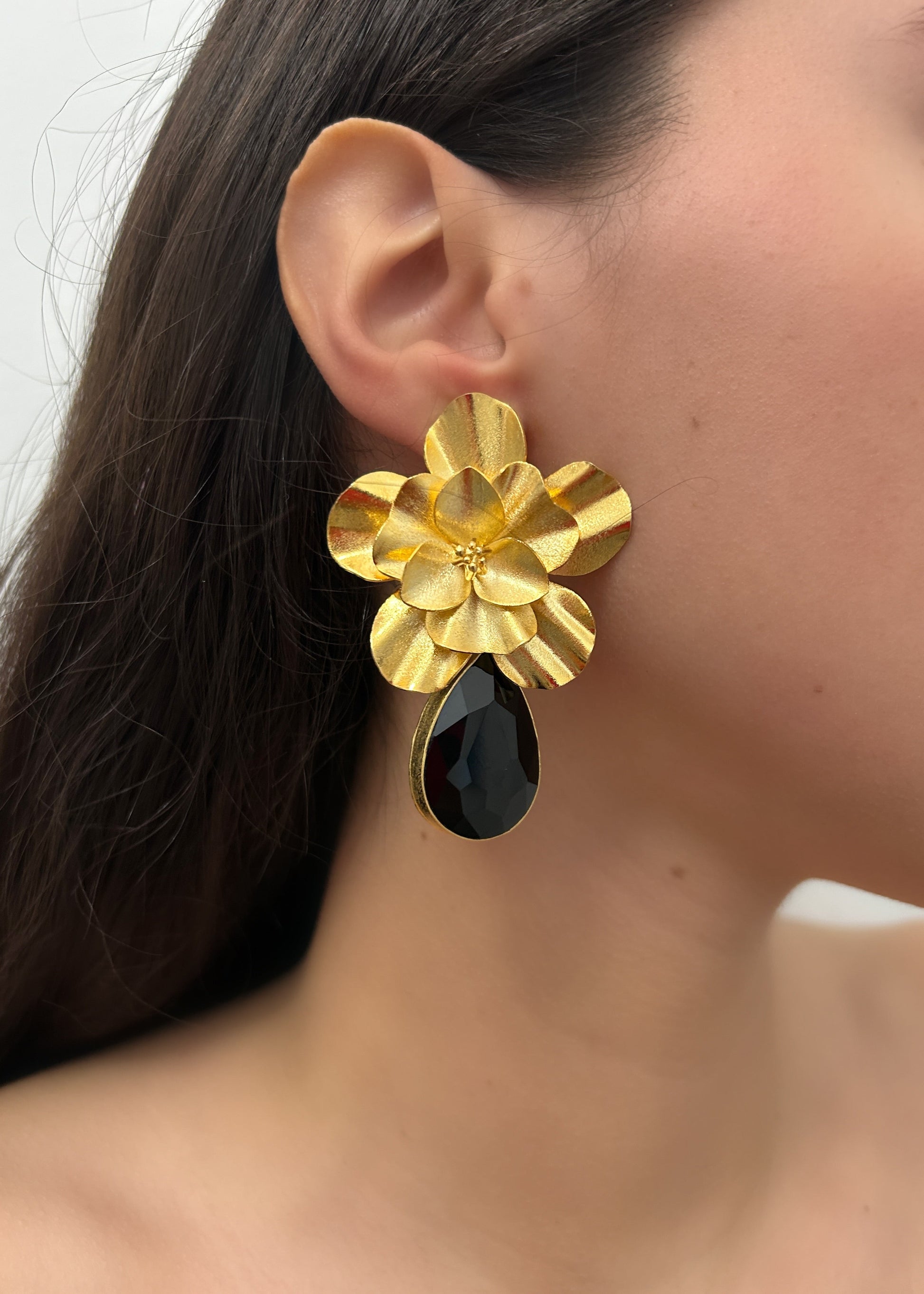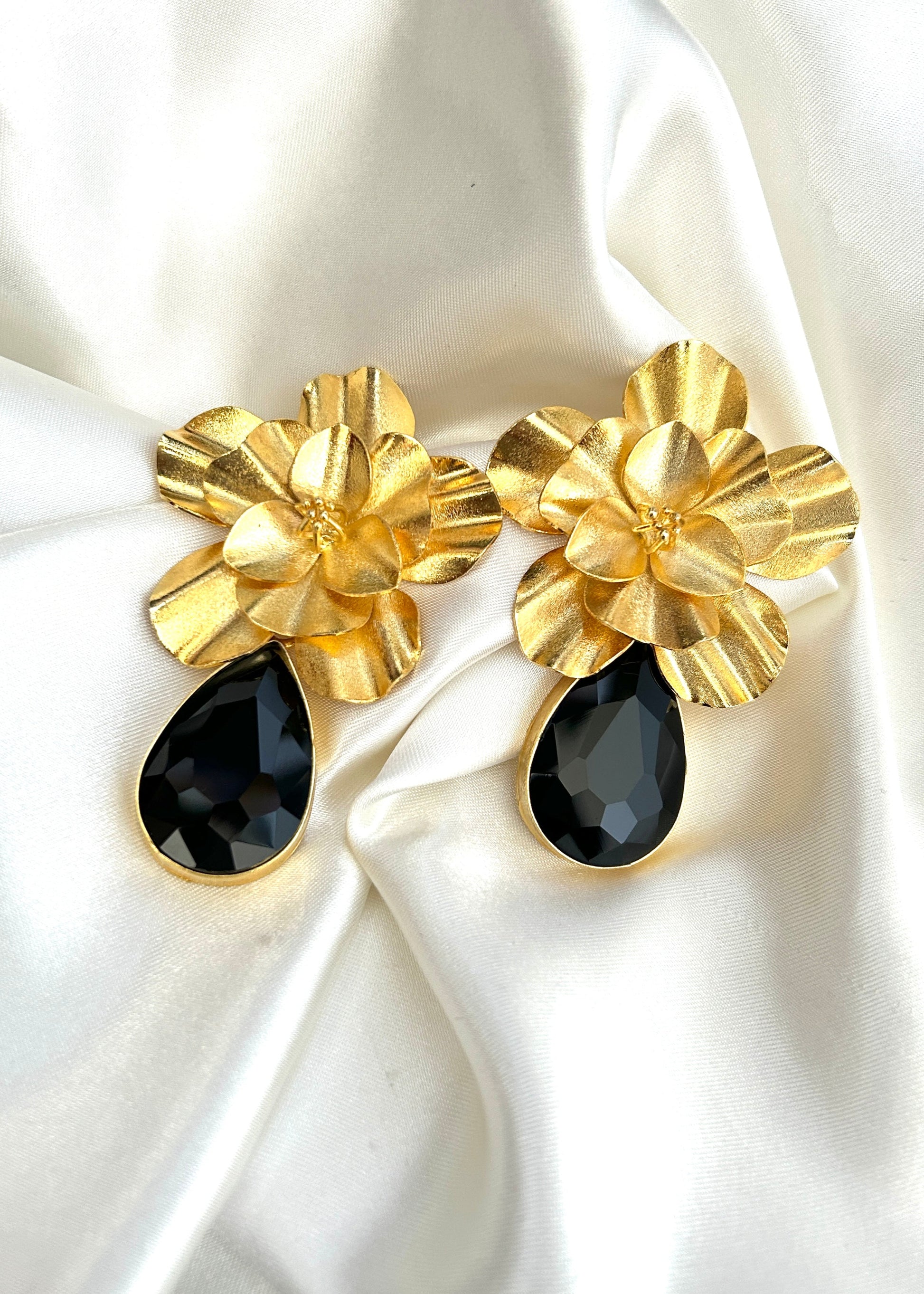The NoirBloom Earrings are an exquisite fusion of elegance and mystique, inspired by the delicate beauty of a blooming flower. The contrast between the dark center and the gleaming petals highlights the striking design, making these earrings a standout accessory for that special occasion.